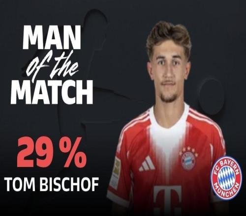德甲第9轮,拜仁慕尼黑主场3-0大胜勒沃库森,此役送出一次助攻的比朔夫当选德甲官方全场最佳球员。此役主场对阵勒沃库森,首发出战的比朔夫在比赛第25分钟助攻格纳布里破门,帮助拜